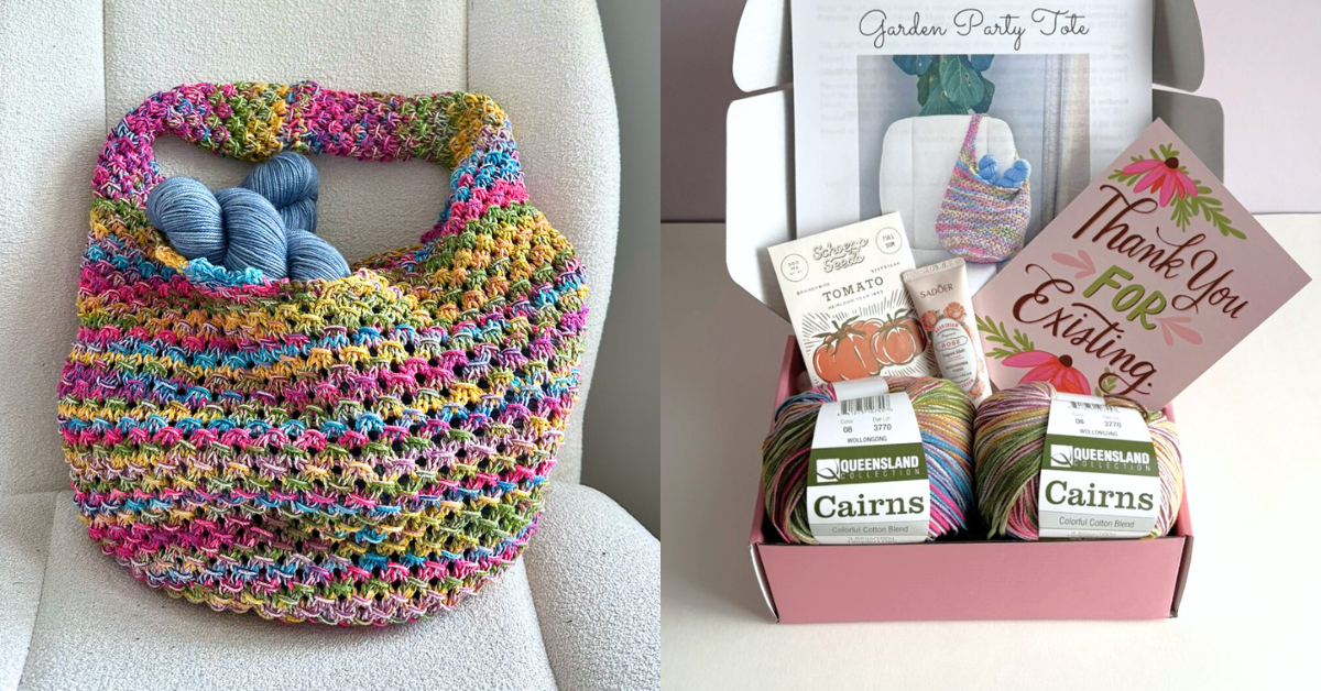 Garden Party Tote knitting kit - advanced beginner level knitting pattern